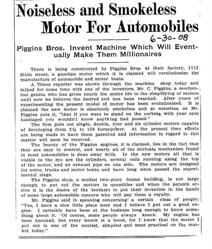 A Racine Times report 1908-06-30: Piggins Bros. invent machine which will eventually make them millionaires.