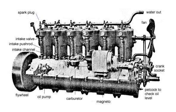 The picture at right of the six-cylinder engine from its manifold side clearly