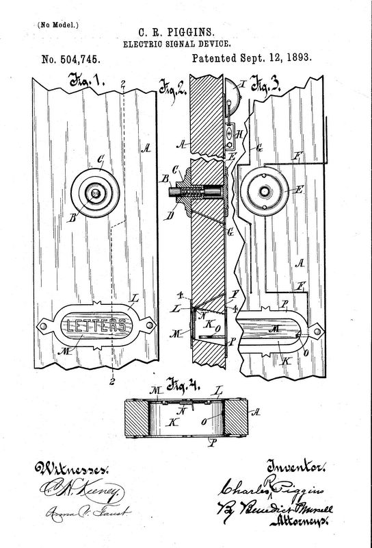 Charles Piggins's second invention: when a letter was put through the slot, a contact was closed and the doorbell rang.
